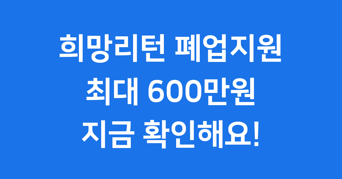 정부에서 희망리턴 패키지 원스톱 폐업지원을 통해 최대 600만원까지 지원금을 준다고 해요. 이 지원금은 소상공인들의 부담을 덜어주기 위해 마련된 아주 좋은 제도랍니다. 제가 이 제도가 무엇인지, 어떻게 신청하는지 자세히 알려드릴게요!
